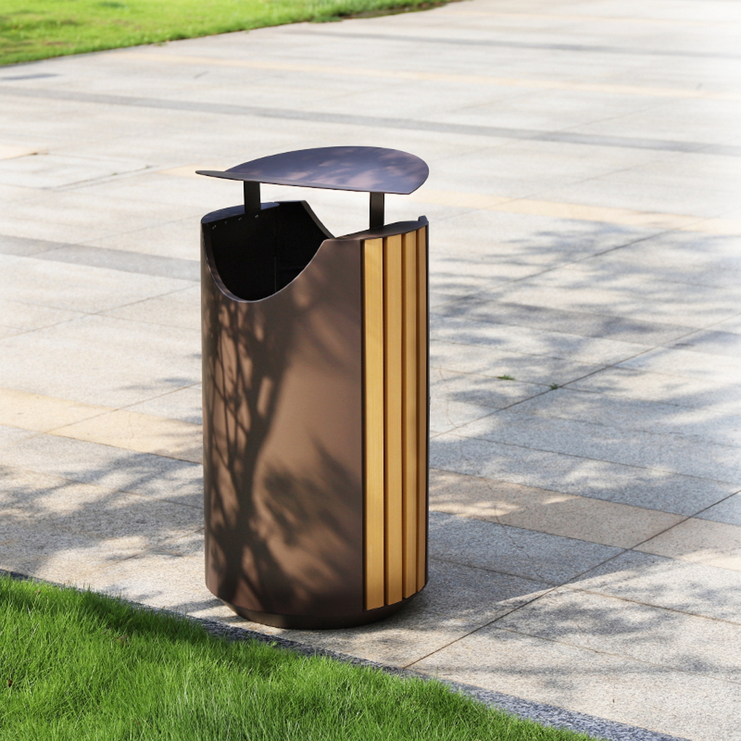Un coș de gunoi exterior premium, conceput pentru durabilitate extremă și prezență vizuală elegantă. Fabricat din oțel galvanizat cu grosime specială, acest model este aproape imposibil de deformat, rezistând perfect în condiții de utilizare intensă și expunere la intemperii.