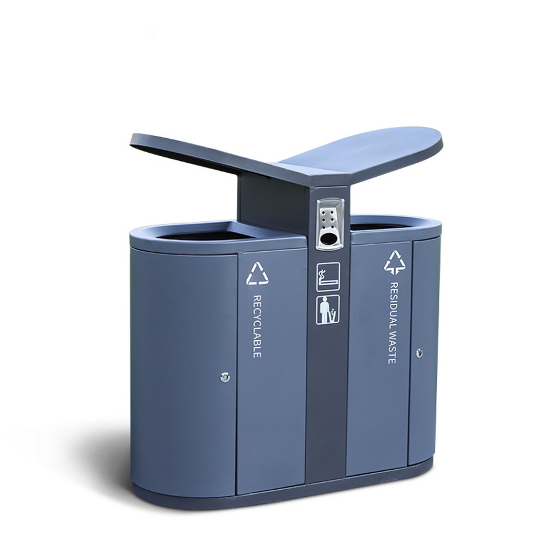 O piesă profesională și durabilă pentru spațiile publice intens circulante — acest coș de gunoi dublu, cu două compartimente de 35 L, combină capacitatea generoasă cu un design solid și modern. Fabricat din oțel galvanizat cu grosime specială, oferă rezistență excepțională la coroziune și deformare. Dimensiunea compactă (~76 × 37 × 95 cm) îl face perfect adaptabil în zone urbane elegante.